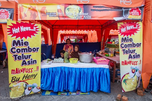 Mie combor telur asin milik bu Heny ini juga tak kalah ramainya, mie rebus yang diguyur kuah mirip mie Jakarta, daan dikasih telur asin. Baunya amis khas telur asin membuat citra rasa semakin menggoda, dengan wadah disposible pengunjung akan bebas makan dimana saja pada tempat yang disediakan sambil menikmati hiburan yang disediakan, bahkan untuk dibawa pulang. Menurut bu Henny pada penjulan