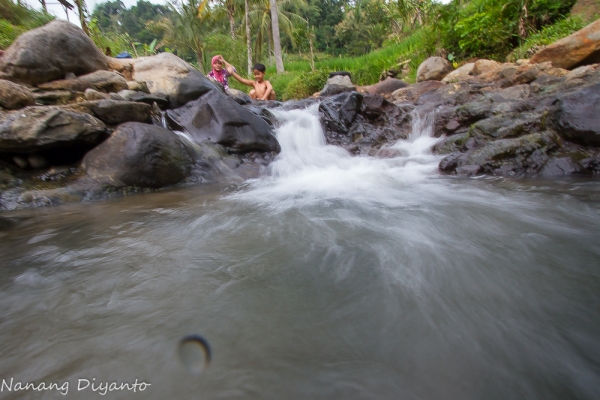 | Sungai yang jernih ini airnya hangat sampai panas, tinggal pilih |